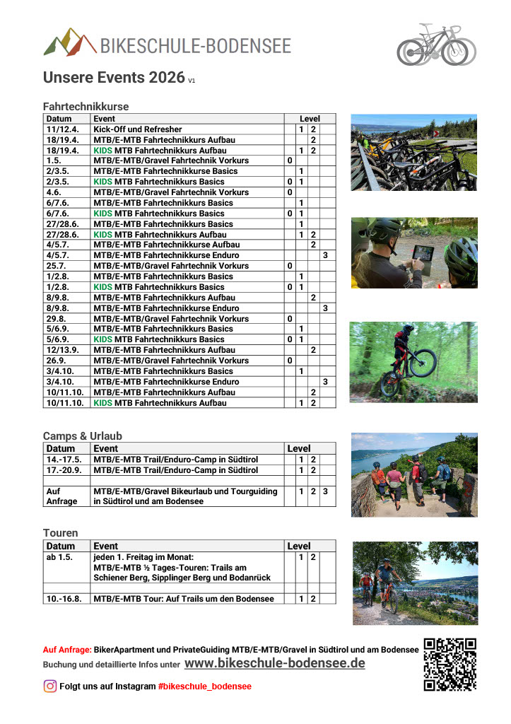 In unserem Bikepark werden regelmäßig Fahrtechnikkurse für Einsteiger und Fortgeschrittene von der Bikeschule-Bodensee in unterschiedlichen Levels angeboten. Die Kurse sind sehr beliebt und immer schnell ausgebucht.